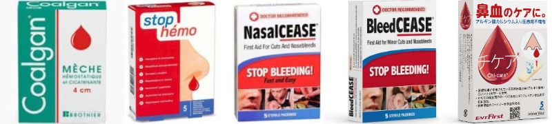 鼻血のケアに使用される「チケア」は、アルギン酸カルシウム繊維で構成されており、藻類由来の止血作用を発揮します。現在、Stop Hémo®、BleedCease®、NasalCease®、チケア®(www.brothier.com)のブランド名で国際的に販売されています。