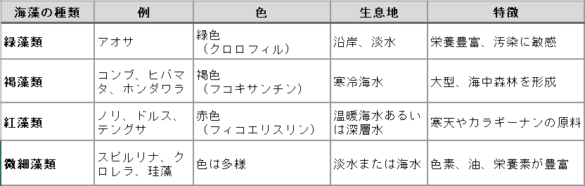 海藻の主な種類